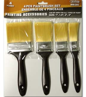MODEL: WHH-2643 4 PCS 1", 1 1/2", 2" & 3" PAINT BRUSH PACKAGE: POLYBAG WITH HEADER PACKING: INNER: 48 PCS, MASTER: 96 PCS |