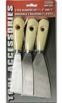 MODEL: WHH-3003 3 PCS 1", 2" AND 3" SCRAPER SET PACKAGE: BLISTER PACK PACKING: INNER: 48 PCS, MASTER: 96 PCS |