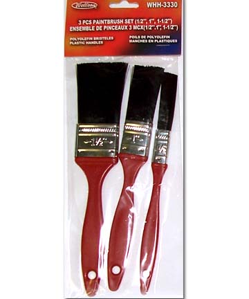 MODEL: WHH-3330 3 PCS PAINTBRUSH SET (1/2", 1", 1-1/2") PACKAGE: POLYBAG WITH HEADER PACKING: INNER: 48 PCS, MASTER: 96 PCS |