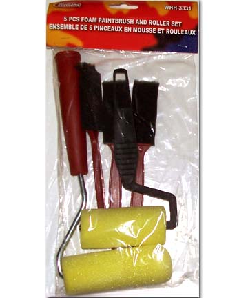 MODEL: WHH-3331 5 PCS FOAM PAINTBRUSH AND ROLLER SET PACKAGE: POLYBAG WITH HEADER PACKING: INNER: 48 PCS, MASTER: 96 PCS |