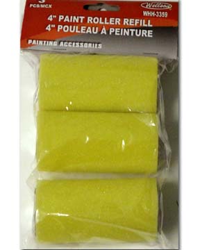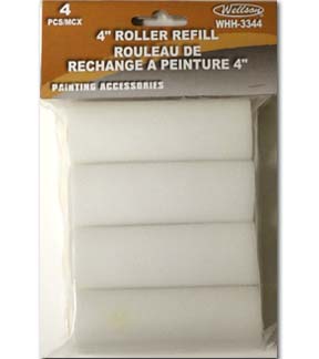 MODEL: WHH-3344 4 PCS 4" PAINT ROLLER REFILL COLOUR: WHITE PACKAGE: POLYBAG WITH HEADER PACKING: INNER: 48 PCS, MASTER: 96 PCS |